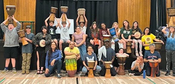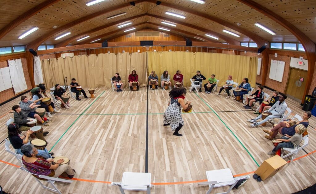 Each morning, we taught music classes to Odyssey students. We introduced rhythms using African djembes, selecting drums by their timbre and guiding students through patterns full of energy and tradition. Along with the rhythms, we taught two songs—Ibo and Tupendani—which the students later performed at the festival. Their final presentation took place on Saturday, October 18th, and watching them shine on stage was one of the week’s proudest moments.